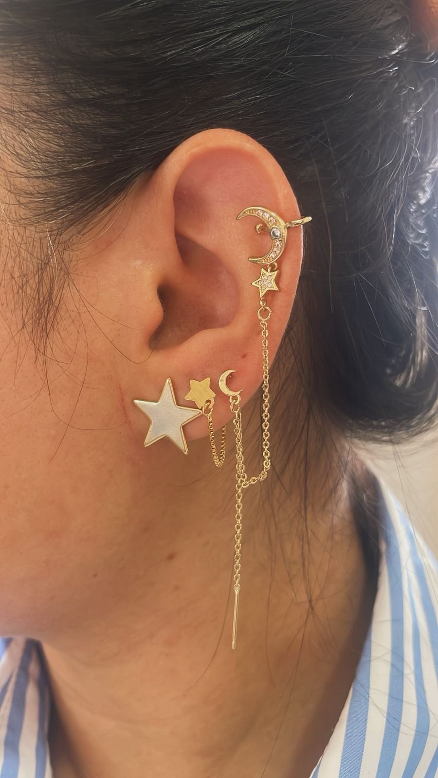 Piercing fake corrente estrela e lua