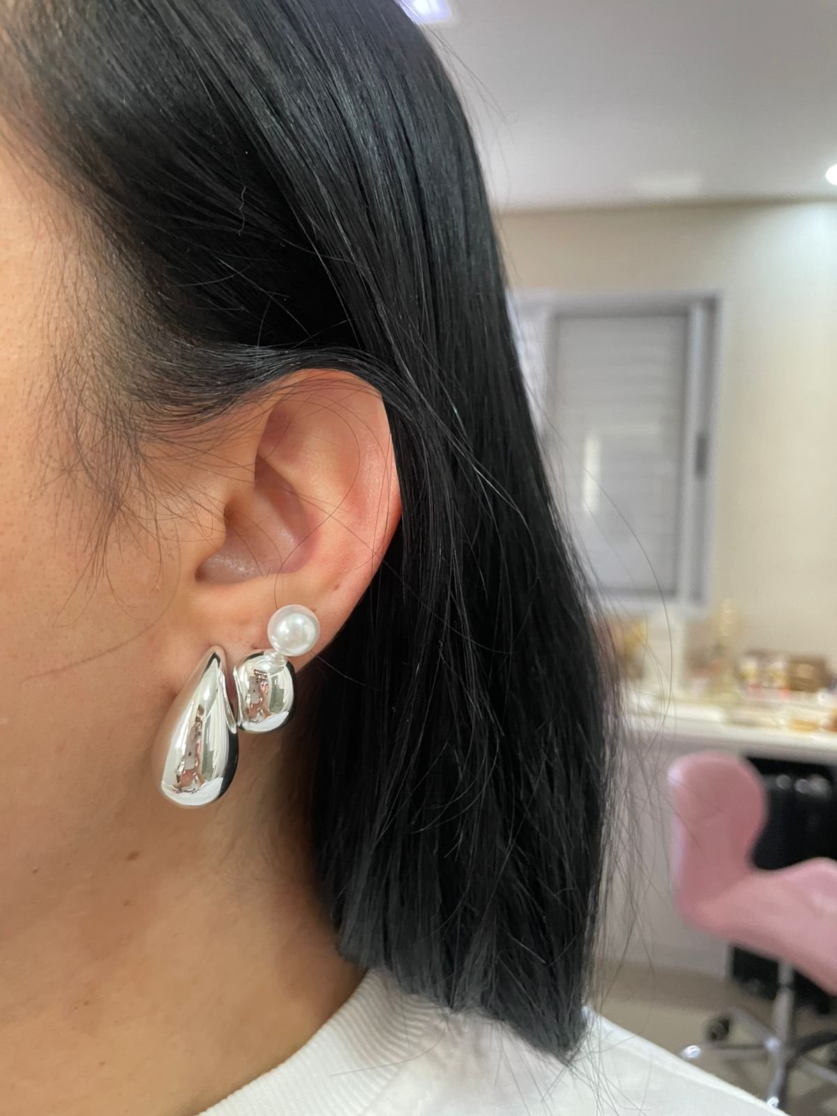 Trio Brincos gota e pérola Prata - Imagem 2